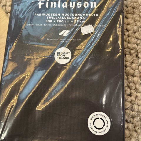 Finlayson muotoonommeltu twill-aluslakana, koko 90 x 200 cm ja kulmakorkeus 25 cm. Materiaali on puuvillaa twill-kudoksella. Väri on musta. Aluslakana on tarkoitettu yhden hengen sänkyyn ja se pysyy paikoillaan muotoonommeltujen kulmien ansiosta. Soveltuu käytettäväksi tavallisten patjojen kanssa arki- ja vieraskäyttöön.
