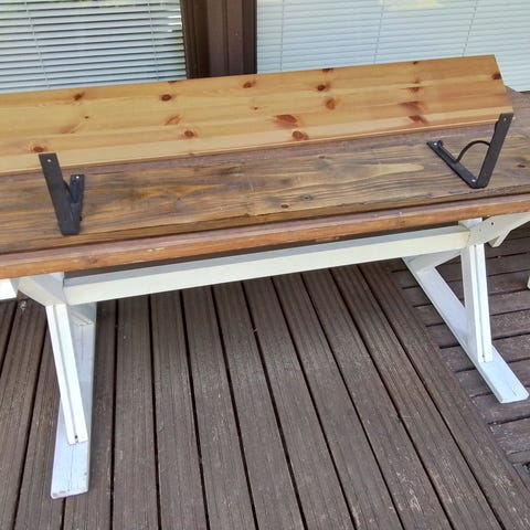 Kuvien 3 kpl katso, mukainen hylly puukannattimilla päädyt sahattu, syvyys 25cm pituus 138cm, hinta 10 euroa käteismaksu ei käy Mobile Pay nouto Ylistaron keskustasta voi tulla katsomaan PALJON MUUTAKIN MYYNNISSÄ TUTUSTU