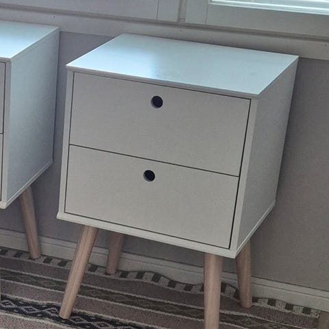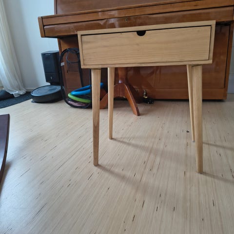 Yöpöytä punaruskeaa puuta. Ollut käytössä, eli käytön jälkiä on. Kuitenkin ehjä ja toimiva. Vetolaatikko ja alataso.