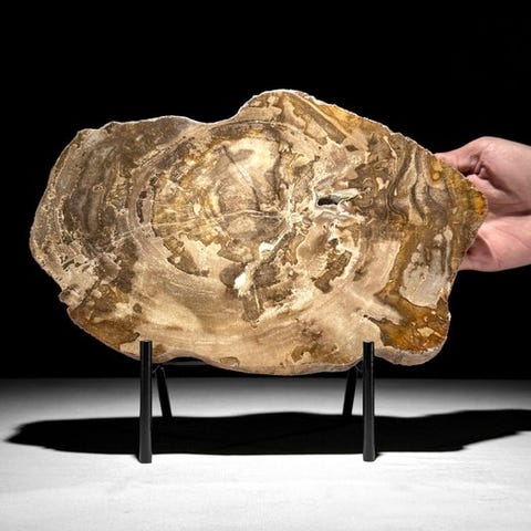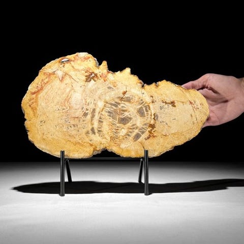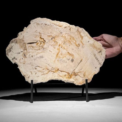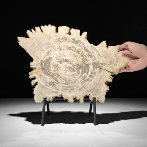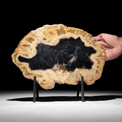Upea pari petrifioidun puun vapaamuotoista teosta ja palloa räätälöidyllä jalustalla.Petrifioitunut puu on mineraalisoitunut pala puusta, joka syntyi, kun puut kaatuivat ja peittyivät maaperän tai hiekan kerroksen alle. Usein luonnononnettomuuden takia. Petrifioituneessa puussa näkemäsi värit riippuvat maaperän tai hiekan mineraaleista. Jokainen mineraali luo oman värinsä. Prosessi nimeltä ’petrifikaatio’ varmistaa, että puun ominaisuudet, kuten oksat, kuori ja vuosirenkaat, säilyvät. Mahdollisesti mätäminen kaukaisessa menneisyydessä voi tarjota upean kristallinmuodostuksen, usein useissa väreissä.Likimääräiset mitat# Freeform --> Korkeus: 21 cm Leveys: 15,5 cm, Pituus: 8,3 cm (ilman jalustaa)# Sphere --> Korkeus jalustan kanssa : 18,5 cm Läpimitta : 10,3 cmVASTUUNRAJOITUKSET:Ole hyvä ja huomioi, että nämä kuvat on otettu pimeässä studiolla, ja värit voivat vaihdella ympäristön mukaan.Mainittu paino sisältää pakkausmateriaalin.LähetysKohde lähetetään seurantanumerolla DHL Parcelin, DPD:n tai postNlin kautta. Seuranta päivittyy Catawiki-luettelossasi, kun pakettisi on jätetty postiin.Ole hyvä ja tarkista säännöllisesti välttääksesi pakettisi palautumisen meille, jolloin ostaja vastaa toisen lähetyksen toimituskuluista.Seurantaan Espanjaan ja Portugaliin käytä tätä linkkiä ja lisää Catawiki-erästäsi saatu seurantanumero.https://clientesparcel.dhl.es/LiveTracking/HomeME EMME YHDISTÄ TOIMITUKSIA!!!Jos sinulla on kysyttävää paketistasi, ota meihin yhteyttä Catawiki-viestipalvelun kautta. Pyrimme vastaamaan kolmessa työpäivässä.