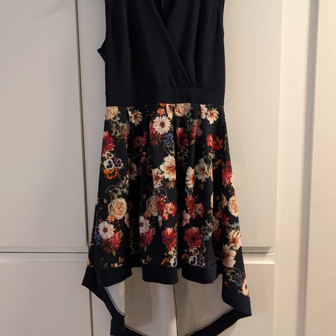 N:o 38. Täyspitkä, A-linjanen, hihoissa kaunis frilla. Jäänyt käyttämättä.