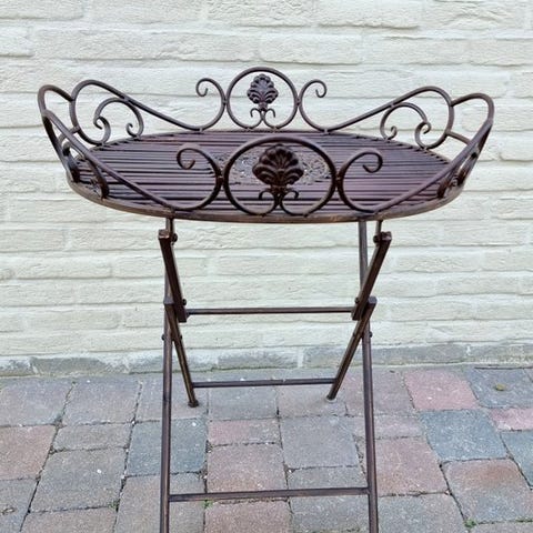 Kaksi ihanaa seisovaa kukkalaudat. Kauniit ruskeat värit. Toinen iso ja toinen pieni. Koko seuraavasti, suuren pöydän (+/-):Korkeus: 70 cmLeveys; 25 cmKaikki tuotteemme pakataan hyvin ja lähetetään vakuutettuna.