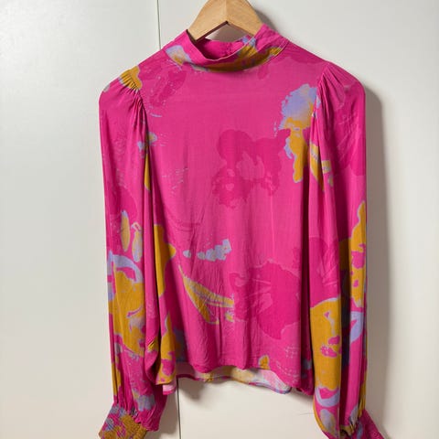 Kaunis Kaiko Puff Blouse lilac anemone -kuosilla. Koko XS. Hyvä jonkun verran käytetty kunto.