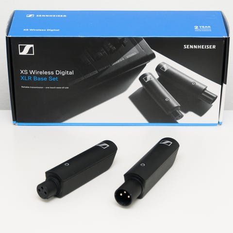 Sennheiser XS Wireless Digital Lavalier set, eli Sennheiser ME2-II mikrofoni ja lähetin 3,5mm liitännällä, sekä vastaanotin XLR-liitännällä.