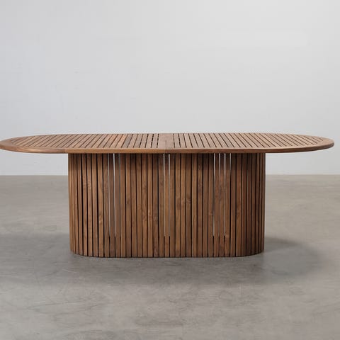 FeelDesignin Stripe-ruokapöytä on valmistettu kestävästä puusta. Pöytä soveltuu erinomaisesti ulkokäyttöön ja patinoituu kauniisti ajan myötä. Tyylikäs muotoilu ja luonnollinen puupinta tekevät pöydästä ajattoman valinnan terassille tai puutarhaan.