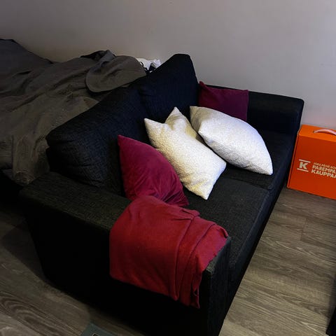 Myydään, muuten hyvä ja mukava sohva mutta sohvassa on käsinojissa hieman tummentumaa, joku satunnainen tahra voi olla, ei ole aikaa pestä sohvaa mutta tekstiilipesurilla sohvan saa ihan uuden veroiseen kuntoon.