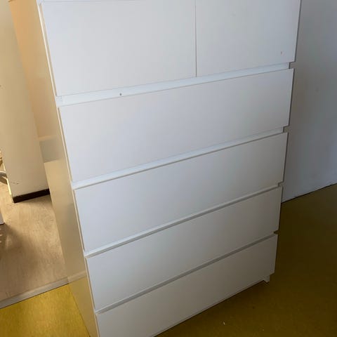 Kolme laatikkoinen Malm lipasto. Hyvässä kunnossa, mutta pinnasta takareunasta pinta kulunut.