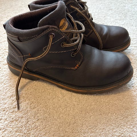 Dockers by Gerli miesten hyväkuntoiset kengät kokoa 41. Päällinen ruskeaa nupukkinahkaa ja ulkopohja paksua kuvioitua kumia.