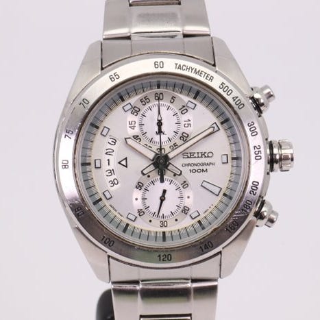 KuvausCase: 42 mm (läpimitta ilman kruunua) x 51 mm (lug-to-lug); joitakin hippusia ja naarmujaDial: Musta kello/äyrä kellotaulu valkoisilla merkinnöillä ja kultavalkoisilla osoittimillaCrystal: LasikruunuDate: Quickset toimiiChronograph: ToimiiStrap: Alkuperäinen (käytetty)Lug width: 20 mmLength including watch head: 15-16Service history: TuntematonRemaining battery life: Uusi ladattava akku/kalvokapasitoriVakuutettu toimitus seuraavilla kanavilla:Paikallinen lähetys: Paikallinen rekisteröity postilähetysKansainvälinen lähetys: DHL ExpressTÄRKEITÄ HUOMIOITA!! OLE HYVÄ NÄETÄ ENNEN HUUTAMISTA!!1. Kellonmyynti tapahtuu sellaisessa kunnossa kuin se on. Ellei toisin mainita, takuu ei ole voimassa eikä aikataulun tarkkuuteen, vedenpitävyyteen jne. liittyviä vaatimuksia huomioida tai käsitellä.2. Ostaja vastaa mahdollisista lisäkustomi-/arvonlisäveroista, joita veroviranomaiset jokaisessa maassa voivat periä. Siksi tarkista asianomaisilta viranomaisilta, jos olet epävarma, ja tee huuto sen mukaan. Mikäli ostaja ei lunasta verojen maksua vuoksi toimitusta, ostaja vastaa kaikista toimitus-, tullauksen- ja muista hallintokustannuksista.3. Mikäli ostaja päättää peruuttaa toimituksen lähettämisen jälkeen, ostaja vastaa kaikista palautuslähetyksen kuluista, hallintomaksuista ja tullimaksuista, jotka on maksettava kellon takaisinlähettämistä ja uudelleen-tuontia varten.4. Kansainvälinen transitio (lukuun ottamatta tulliselvitystä ja viimeisen mailin toimitusta) kestää yleensä enintään 2 viikkoa, mutta voi kestää kauemmin riippuen maasta ja paikasta, julkisista pyhäpäivistä, Ukrainan sodasta sekä maailmanlaajasta pandemiasta.5. Huomaa myös, että meillä ei ole vaikutusvaltaa tai hallintaa siihen, kuinka nopeasti kunkin maan tulliviranomaiset käsittelevät lähetyksen saapuessa maahan. Siksi tarkista tulliviranomaiseltasi/postipalvelulta, kun ostos on saapunut maahan.