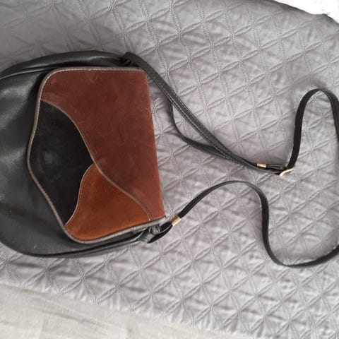 Materiaali mustaa nahkaa (hihna ruskeaa tekonahkaa)