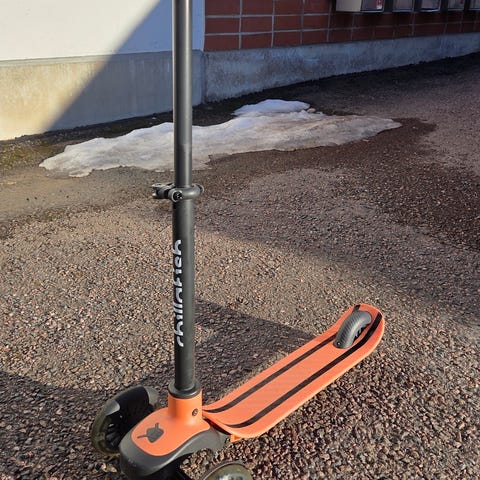 Kickbike Freeride potkulauta vihreä. Mallissa on suuret ilmakumirenkaat, edessä ja takana V-jarrut käsijarrukahvoilla sekä metallinen runko. Sopii potkutteluun kovilla alustoilla ja kevyessä maastossa. Ohjaustangossa on suorat kädensijat ja soittokello. Sekä etu- että takapyörässä on heijastimet näkyvyyden parantamiseksi.