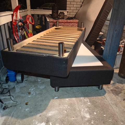 Useamman vuoden vanha, uutena ostettu. Myydään pois sopivamman tieltä. Hyväkuntoinen ja ei mikään superpehmeä eli aikanaan ostettu kovana ihan aikuispainon käyttöön, meillä toiminut tosi hyvin.