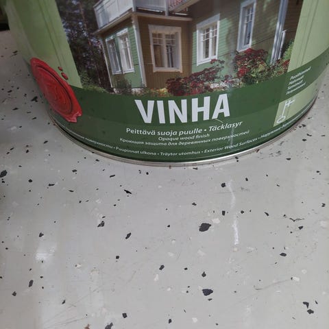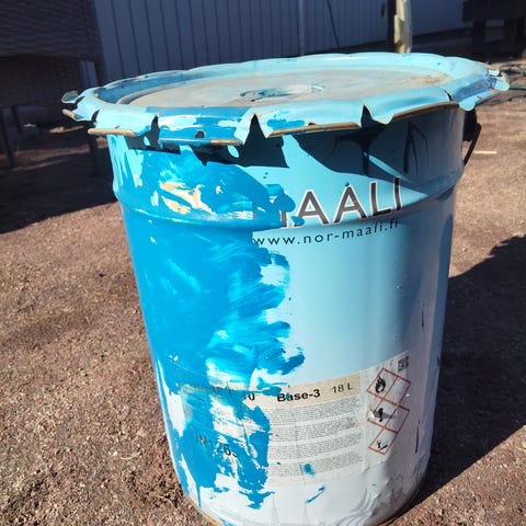 Varastossa erilaisia avaamattomia maaleja ja pinnoitteita.