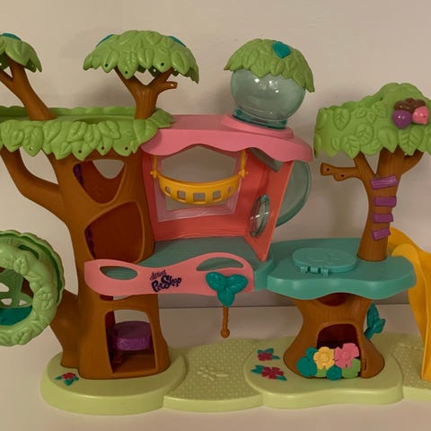 Littlest Pet Shop leikkitalo. Muovinen, monivärinen avattava talo. Siinä on useita leikkitiloja pienille figuureille. Sisällä on muun muassa istuin, joka liikkuu. koristeellisia yksityiskohtia. Soveltuu pienten keräilyhahmojen ja muiden pienten lelujen kanssa leikkimiseen.