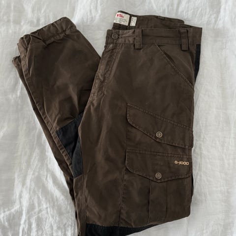 Myydään hyvässä kunnossa olevat Fjällrävenin retkeilyhousut irrotettavilla lahkeilla. Savuton, tuoksuton ja eläimetön koti. Nouto Hälvälästä tai postitus.