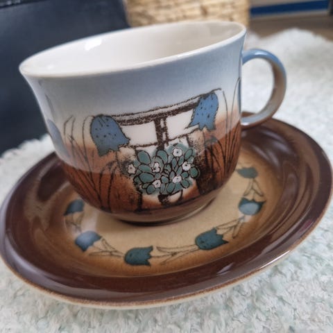 Arabia - Heljä Liukko-Sundström - v. 1977 Äidille kahvikuppi ja aluslautanen