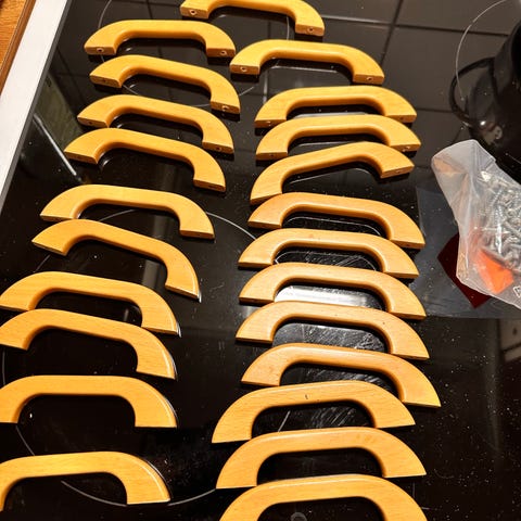 Ehjät Puustellin puuvetimet pyökkiä. Pituus 11,5cm, ruuvien etäisyys 96mm.