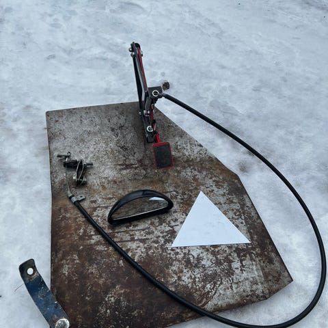 Tuo tommonen poljin, peili ja kolmiomagneetti
