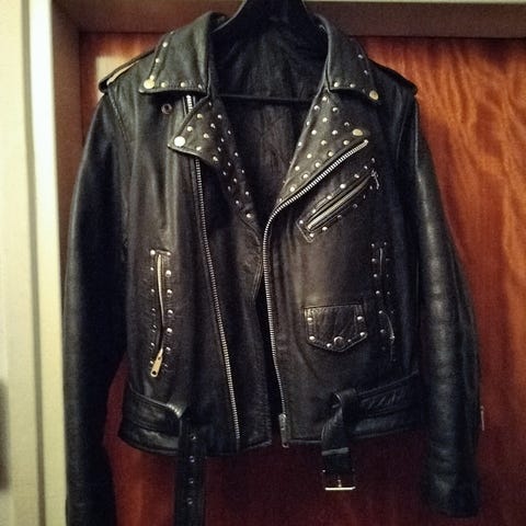 Myydään sellpystä ostettu mutta itselle liian pieneksi todettu miesten bikertyylinen nahkatakki, aitoa nahkaa. Koko 44, vastaa M-L. Suht kapea selästä. Hyvä kunto, pieni tahra etupuolella. Nouto LPR tai toridiili.