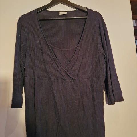 Musta-valkoraidallinen 3/4 hihainen erittäin mukava ja pehmeä äitiyspaita Kai-kai 54cm, pituus olkapäästä 61cm Mamalicious merkkinen