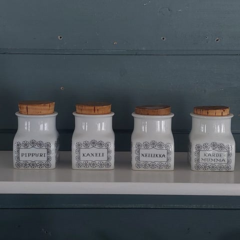 Myydään neljä isoa ja kuusi pientä Arabian (mauste)purkkia.