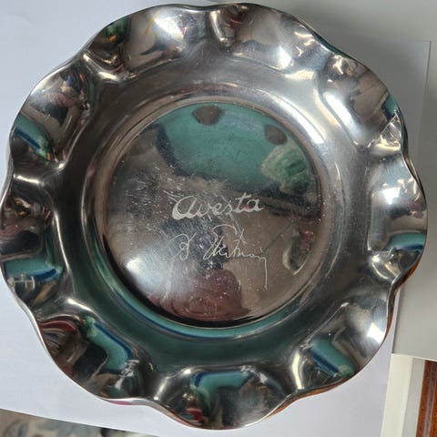 Hackmanin valmistama pieniteräsalusta/kynttilän alunen. Valmistettu Sorsakosken tehtaalla, joka tunnetaan erityisesti laadukkaista ruostumattomasta teräksestä valmistetuista keittiövälineistään ja aterimistaan.