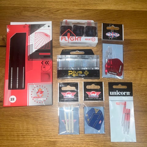 Mukaan pakkaus ja alkuperäiset varret joista yksi hajonnut.