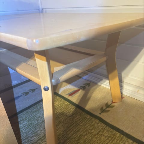 Toimistokäytössä ollut kulmaan laitettava työpöytä. Väri pähkinä. Koostuu kahdesta levystä ja kuudesta jalasta. Haku mahdollisimman pian.