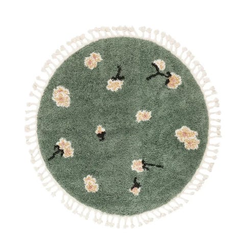 Tämä pyöreä, kuviollinen matto on koneellisesti valmistettu polypropeenista ja viimeistelty puuvillaloimella, mikä tekee siitä miellyttävän tuntuisen ja arjessa huolettoman valinnan. Helposti puhdistettava nukka sopii erityisen hyvin olohuoneeseen, keittiöön, eteiseen tai makuuhuoneeseen, kun kaipaat käytännöllistä mutta viimeisteltyä ilmettä. Ø 150 cm kokoinen matto asettuu kauniisti esimerkiksi sohvapöydän alle tai pieneen oleskelutilaan, ja lateksipohja auttaa pitämään sen napakasti paikoillaan. Materiaalit: 80 % polypropeeni, 20 % puuvilla; OEKO-TEX®-sertifioitu.