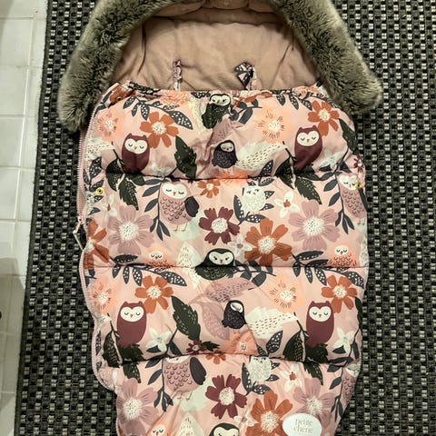 Petite Cherie muhkea lämpöpussi vaunuihin. Vihreä kuviollinen päällinen ja tumma sisäosa. Yläosassa tekoturkisreunus hupussa. Sopii käytettäväksi lastenvaunuissa ja rattaissa tuomaan lisälämpöä ja suojaa kylmällä säällä. Lapset kulkeneet tässä sisävaatteissa useimmiten, pitää hienosti lämpimänä muutamassa miinusasteessakin. Pussin saa nopeasti avattua sisätiloihin tultaessa. Pesty hajusteettomasti.