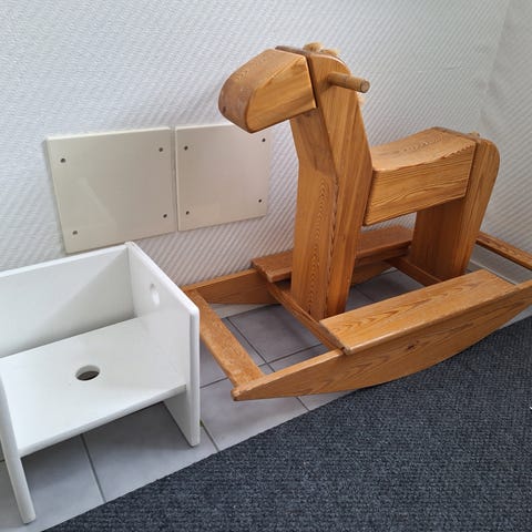 Lasten tuoli, valkoinen keinutuolimallinen. Puinen runko.Soveltuu n.4-10 vuotiaille lapsille leikkihuoneeseen tai vaikka telkkarin katseluun.
