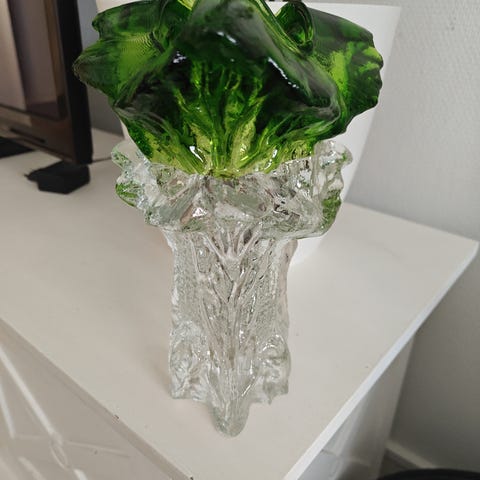 Humppilan lasitehtaan valmistama sininen maljakko Fantasia-sarjasta, jonka on suunnitellut Henrik Koivula 1970-luvun alkupuolella. Korkeus 17cm. Signeerattu.