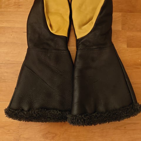 Mustat Mutka nappanahkaiset moottorikelkka rukkaset irrotettavalla teddy vuorella.