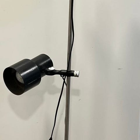 Kaunis puinen lattiavalaisin sorvatulla jalalla. Varjostin on uusi. Varjostimen halkaisija alhaalta 41cm ja ylhäältä 36cm sekä varjostimen korkeus 30cm.
