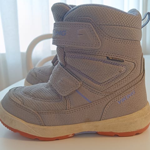 Viking lasten talvikengät, koko 30, unisex-malli. Väri musta vaaleilla yksityiskohdilla. Kengissä on korkea varsi ja tarrakiinnitys kahdella remmillä, mikä helpottaa pukemista ja riisumista. Päällinen on tekstiiliä ja synteettistä materiaalia, pohja kuvioitua kumia. Soveltuvat sekä tytöille että pojille talvi- ja välikausikäyttöön.