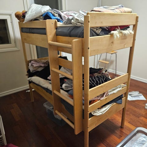 Suomalainen umpipuuta oleva kerrossänky etsii uutta kotia. Ollut meillä käytössä kahden lapsen kanssa (2 viimeistä vuotta yhdellä).