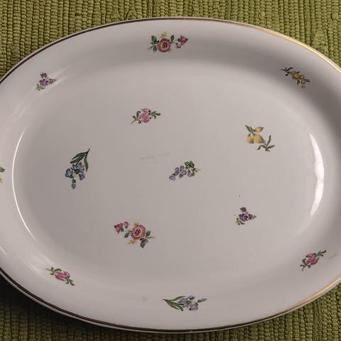 Kaunis Arabian tarjoiluvati (30,8x23 cm). Kunto hyvä - vaikkakin puutteita - kultaus pienesti kulunut, naarmuja. Käsityön jälki nähtävissä.