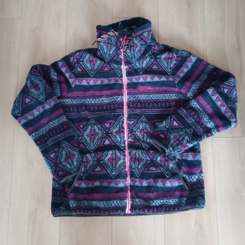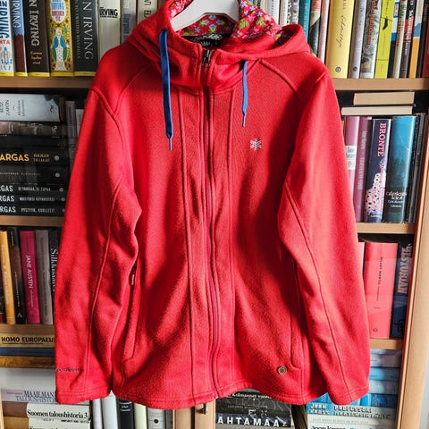 Ollut käytössä, mutta silti siisti ja hyvässä kunnossa. Koko minusta vastaa L/XL kokoa. Lämmin perus fleece sopii hyvin kerrasto pukeutumiseen.