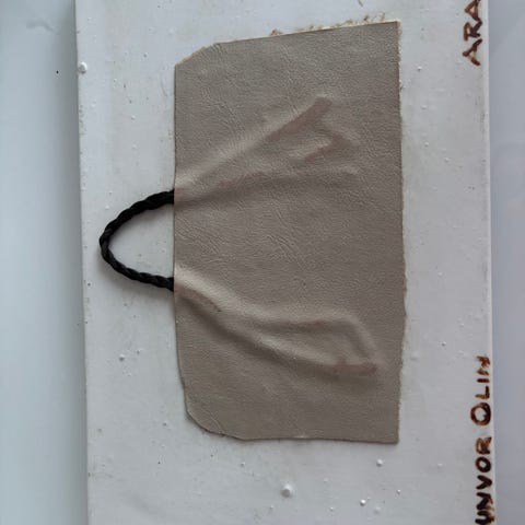 Neliönmuotoinen laatta soveltuu seinälle ripustettavaksi sisustuselementtinä. Alakulmassa on kohokuvioitu Arabia-merkintä.