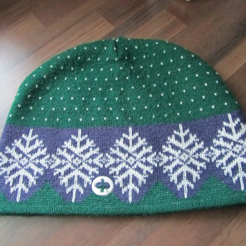Kivan monivärinen Luhta-pipo. Päävärit lila ja musta. Materiaali villa/akryyli 50/50. Kunnoltaan erittäin siisti, napakka, ei ole venynyt.