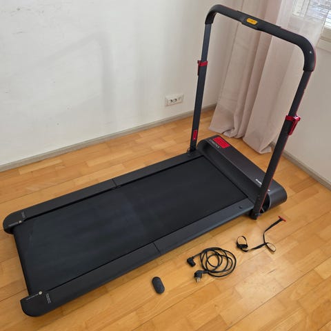 Myynnissä hyväkuntoinen, muutama satakilometriä kävelty Gymstickin kävelymatto. Mukana kaukosäädin, keskeltä taitettava ja rullat päässä liikuttelua varten.