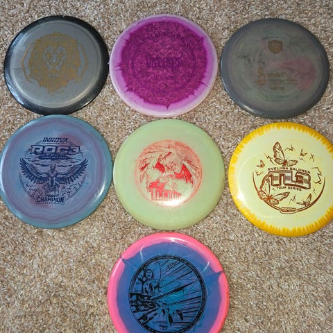 Läjä hyväkuntoisia frisbeegolf kiekkoja. Hintaa ja tarkempia kuvia voi tulla kysymään yv🙂
