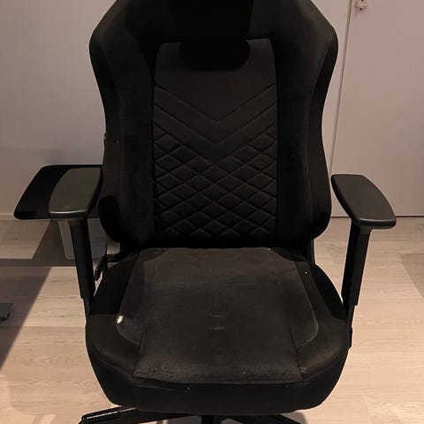 Kolmisen vuotta vanha Ikean Matchspel toimisto/pelituoli. Valkoisessa kankaassa värjäymää jonkin verran, muuten ei kunnossa moitittavaa.