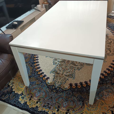 Valkoinen ruokapöytä.