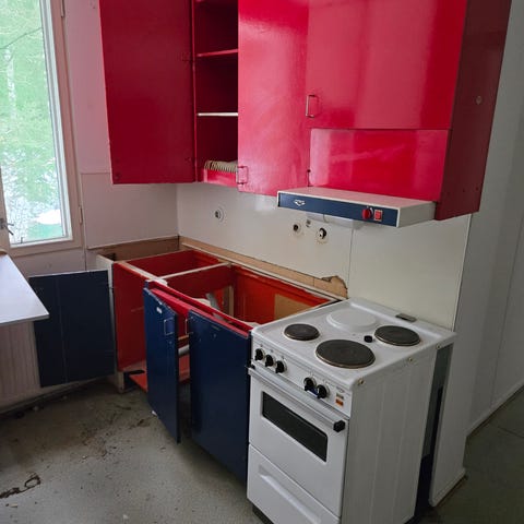 Hyvässä kunnossa olevat, hiontaa ja uudelleenmaalausta vailla 40-50-luvun kaapinovet.