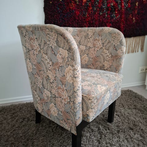 Myydään harmaat nojatuolit, jotka ovat edelleen mukavat ja käyttökelpoiset. Kankaassa on muutamia näkyviä värjäytymiä, mutta kokonaisuutena tuolit ovat kohtuullisessa kunnossa.