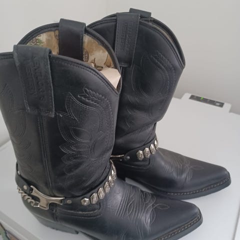Mustat Kentucky's Western cowboy bootsit. Kuin uudet, kärjet ja pohjat hyvässä kunnossa. 42 kokoa. Ei lie montaa kertaa pidetty, perintötavaraa joten en varmaksi pysty sanomaan.