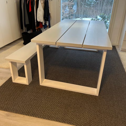 myydään käytettynä ostettu Veke lankkupöytä.