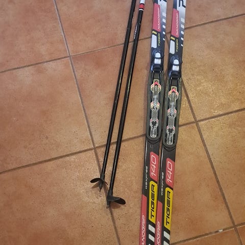 Myydään lasten suksipaketti. Pituus:130cm, monot 33 ja sauvat n.110cm Nnn-side. Pohjissa pitopohja ja jonkinverran naarmuja ja kulumaa