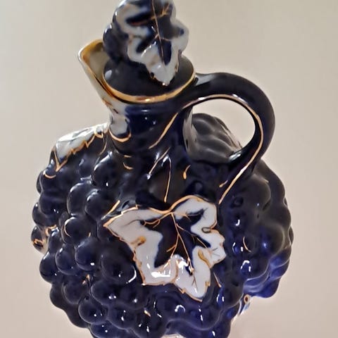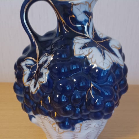 Lomonosovin tuotantoa oleva korkillinen rypälekannu. Hyväkuntoinen, ehjä kannu. Pohjasta löytyy leima.